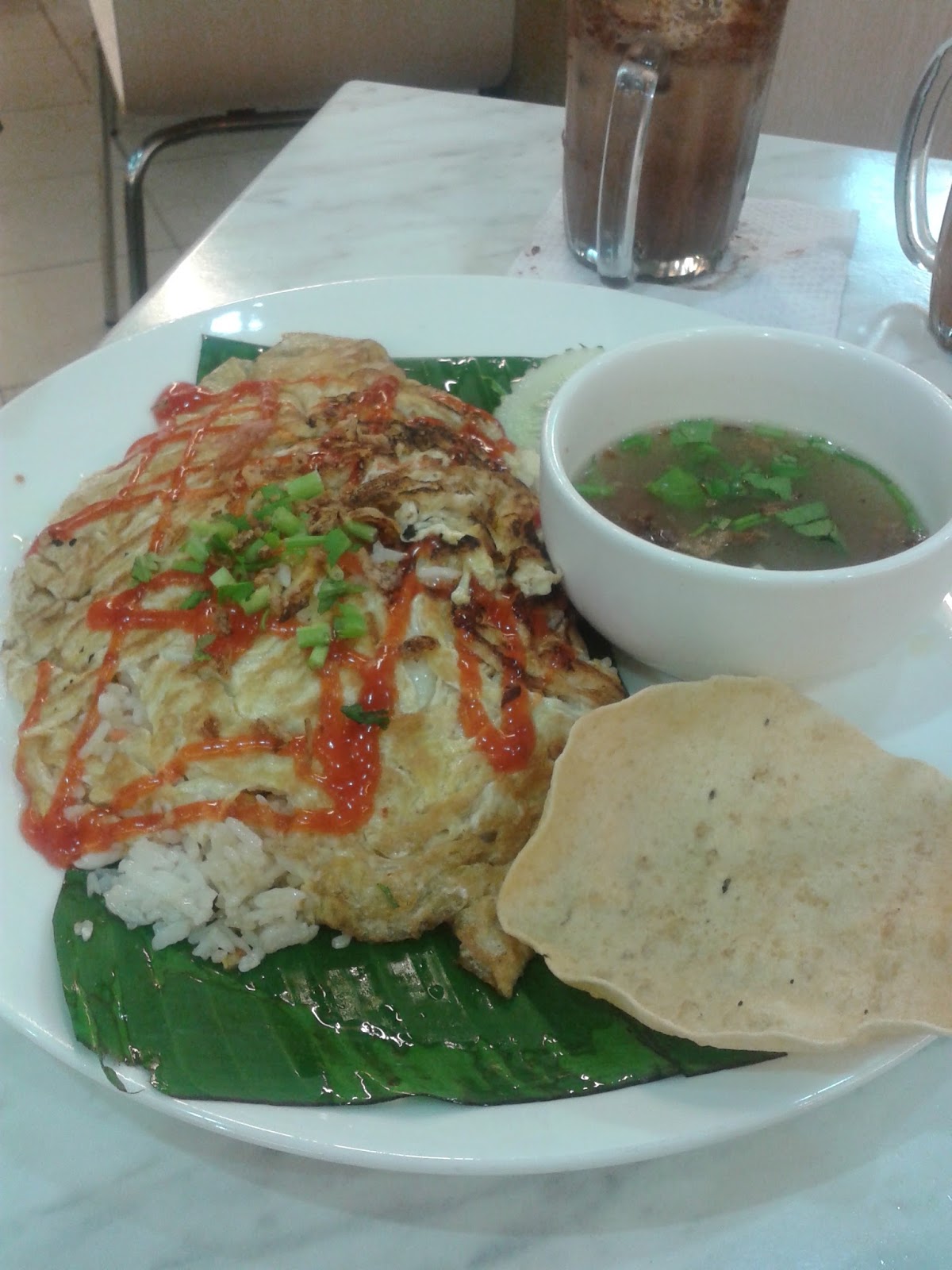 SRK sangat memahami kalau akak nak snap gambo food tapi sebab malam tadi dah over lapar, dia dah makan sikit, baru dapat snap...hehe. Nasi goreng cina pilihan SRK. Not bad, RM4.50 jek. Murah kan. Ada sup dan ada keropok.